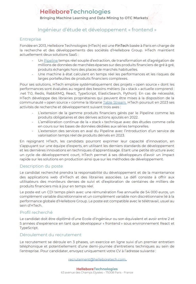 There is a constant feedback of your work: Writing a white paper on a new theory to solve one of our problem? Coding a new algorithm? Designing one of our product websites? You’ll know what our clients think, you’ll get an immediate result.